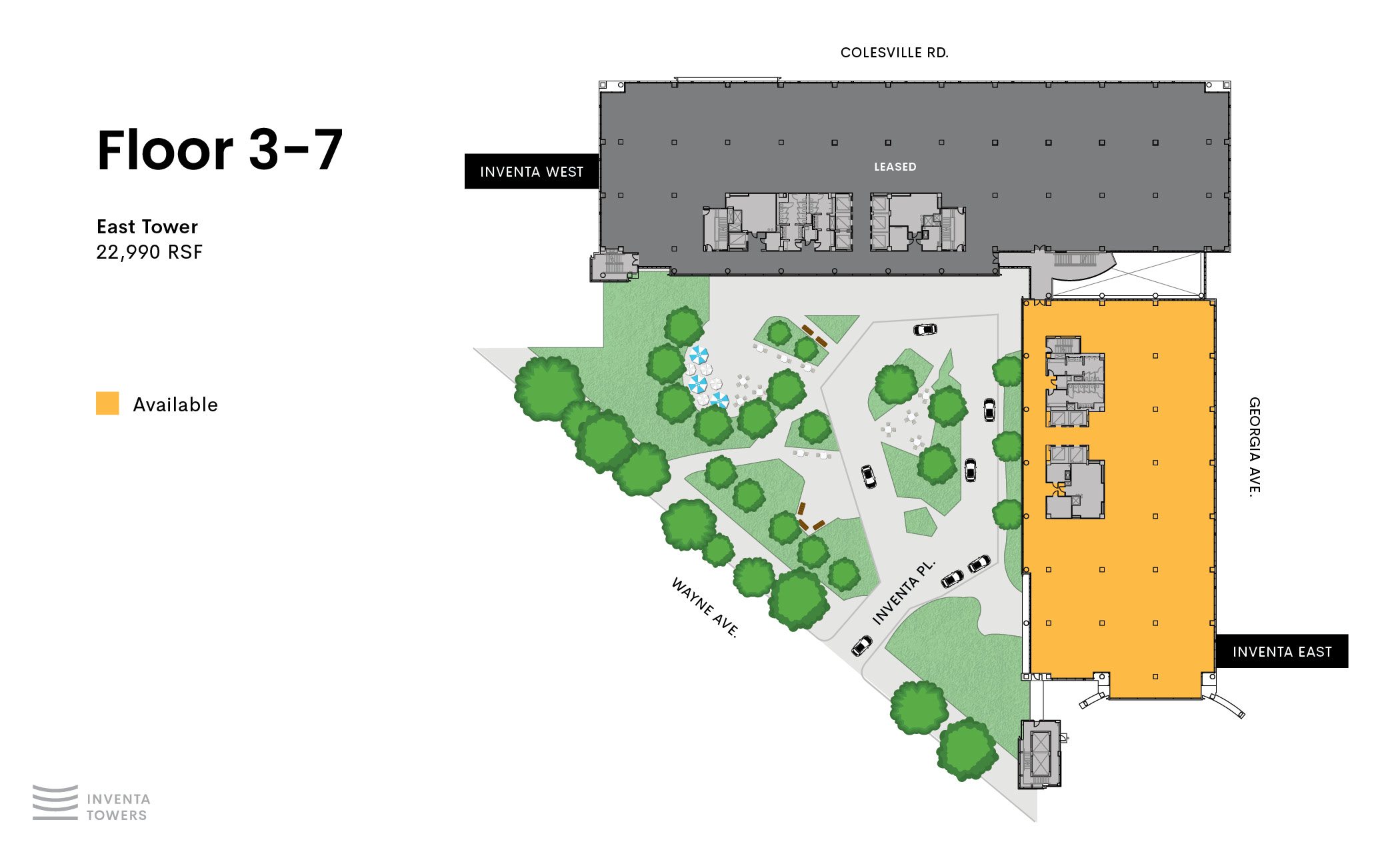 Inventa Towers provides state-of-the-art spaces with advanced technology, WiredScore Platinum certified for connectivity, and excellent corporate neighbors. This unique two-building property, offering both large and small opportunities, is ideally situated just minutes from downtown D.C., within walking distance to the Metro, and close to all three major airports.